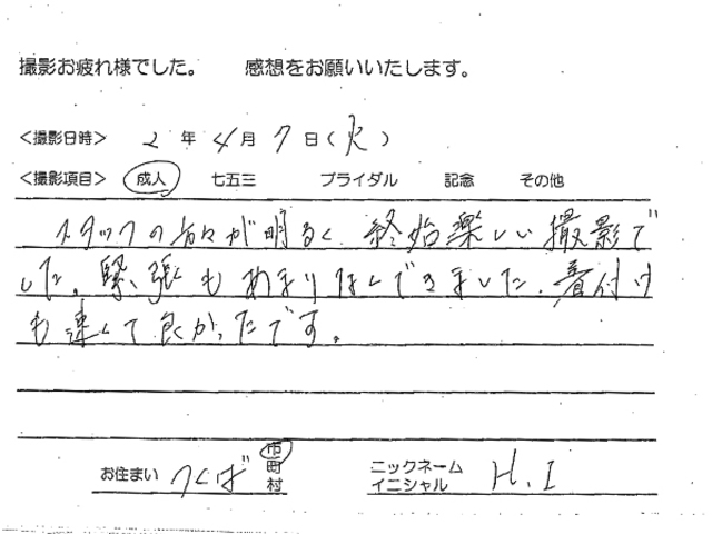 とっても可愛らしい笑顔で楽しく撮影を進めさせていただきました