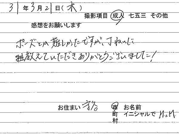 安心して撮影が出来て良かったです